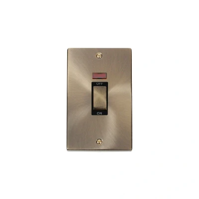 Click Deco 45A Ingot 2 Gang DP Switch with Neon Antique Brass Insert Black