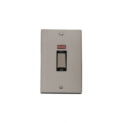 Click Deco 45A Ingot 2 Gang DP Switch with Neon Stainless Steel Insert Black