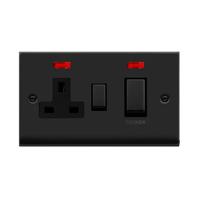 Click Deco 45A Ingot DP Switch with 13A Switched Socket and Neons Matt Black Insert Black