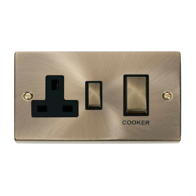 Click Deco 45A DP Switch 13A Switched Socket Antique Brass Insert Black