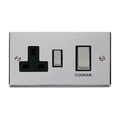 Click Deco 45A DP Switch 13A Switched Socket Polished Chrome Insert Black