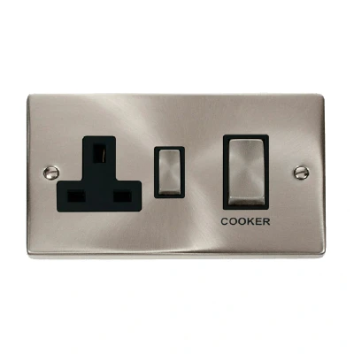 Click Deco 45A Ingot DP Switch with 13A Switched Socket Satin Chrome Insert Black