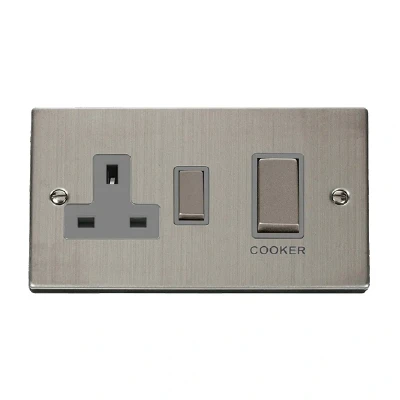 Click Deco 45A Ingot DP Switch with 13A Switched Socket Stainless Steel Insert Grey