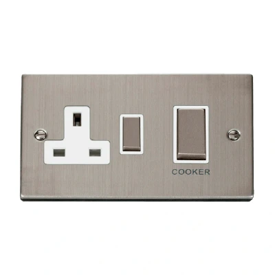 Click Deco 45A Ingot DP Switch with 13A Switched Socket Stainless Steel Insert White