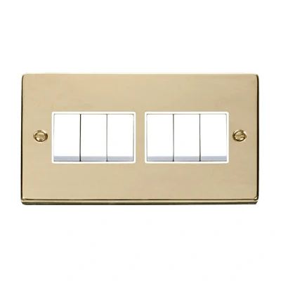 Click Deco 6 Gang 2 Way 10AX Switch Polished Brass White Inserts