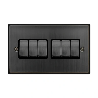 Click Deco 6 Gang 2 Way Ingot 10AX Switch Matt Bronze Black Inserts