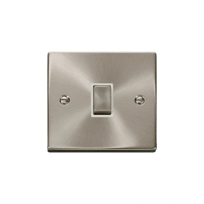 Click Deco 20A 1 Gang Double Pole 'Ingot' Switch Satin Chrome Insert White