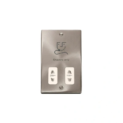 Click Deco 115/230V Dual Voltage Shaver Socket Outlet Satin Chrome Insert White