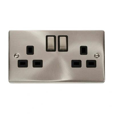 Click Deco VPSC536BK Satin Chrome 2 Gang Switched Socket Black Insert …