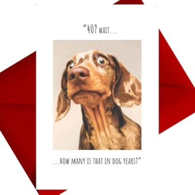 Click, Like and Share Humorous 40th Birthday Card, Dog is Shocked!, Multi Coloured