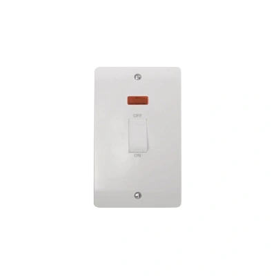Click 45A 2 Gang Single Cooker Switch Double Pole With White Rocker With Neon White PVC