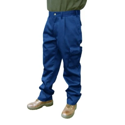 Amazon320gsm 65% Polyester / 35% Cotton Cargo trousers with triple stitched seams 2 Side pockets and ticket pocket Metal zip fly Reinforced back pockets with flaps and Velcro fastening