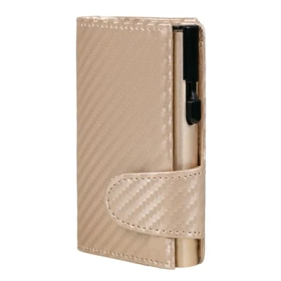 The Clicksafe wallets are the innovative mini wallets with the patented click system. One click on the side button and the credit cards slide out of the wallet. The RFID protected safe can hold up to 8 cards and are safe from bending, breaking and reading data. In addition, the wallet has a coin compartment, a note compartment and another compartment for tap and go cards such as tickets. The credit card holder is made of high-quality FineTouch imitation leather. Due to the small dimensions of approx. 6.5 cm x 10 cm x 2.5 cm, the purse fits easily in your pocket Clicksafe – design combined with great use. Protect not only your money, but also your privacy.