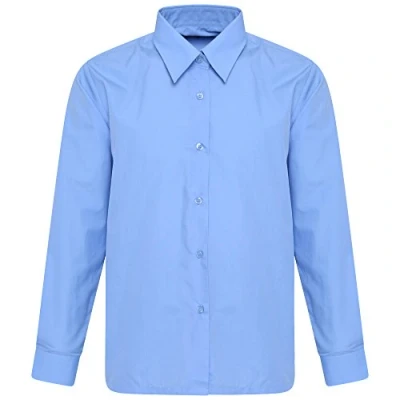 clicktostyle Girls Children Kids School Uniform Polycotton Blue Colour Blouse Long Sleeve Shirt (40" (16 18 Years))