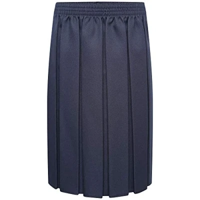 clicktostyles School Uniform Full Box Pleated Skirt Elasticated Waist Knee Length Skirts for Girls (Navy Blue, 15 16 Years)