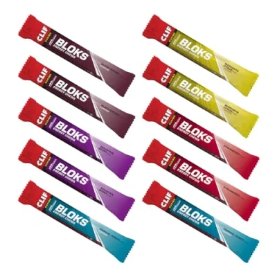 ALL FLAVOURS: Try all available flavours in this convienient multi-pack containing 2 x Mountain Berry, 2 x Strawberry, 2 x Black Cherry, 2 x Tropical Punch, 2 x Margarita Citrus. Simple, easy-to-chew carbohydrates for athletes during activity. ENERGY FOR ENDURANCE: CLIF BLOKS Energy Chews are an easy-to-chew source of quickly absorbed carbohydrates that deliver glucose and fructose for fast fuel to working muscles. CARBOHYDRATES: contribute to the improvement of physical performance during high-intensity and long-lasting physical exercise in trained adults. CUSTOMISABLE: CLIF BLOKS come in 33-calorie cubes, with sleek and portable packaging that makes it easy to customise and track caloric and electrolyte intake during long outings and races. EASY TO EAT: Easy-to-open packaging and a soft, chewable texture lets you focus on performance.
