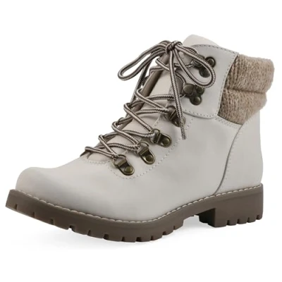 Cushioned insole Lug treaded outsole Sweater ankle collar D ring lacing