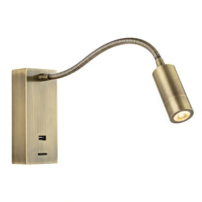 Clifton LED Flexi Wall Reading Light & USB Antique Brass
