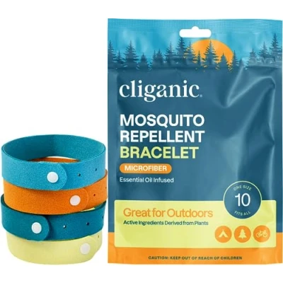 Cliganic Mosquito Repellent Microfiber Bracelets (10 Count) for Adults and Kids, DEET Free Wristbands
