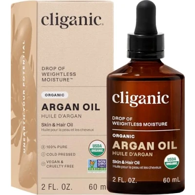 Cliganic Organic Argan Oil, 100% Pure Moroccan Oil for Hair, Face & Skin Natural Cold Pressed Carrier Certified
