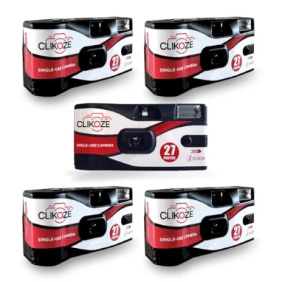 Clikoze Compact & Portable Disposable Cameras : Ideal for capturing moments on the go. Fits effortlessly in pockets or bags, making it your perfect travel companion and single-use film cameras User-Friendly for All Ages: Effortless operation makes it suitable for everyone from kids to adults. Includes Kodak 35mm Film Preloaded. No complicated settings, just point and shoot, then an easy thumb wind for the next shot. Bring your vintage camera with you wherever you go for simple retro camera photography. High-Quality Photos: Equipped with Kodak colour film, 27 exposures and ISO 400 film, ensuring each shot is clear and vibrant, with a number counter to keep track of all the photos you have taken. Perfect for capturing memories in various lighting conditions. Ideal for Events & Gatherings: Whether it's a wedding, party, or family function, these cameras add a fun, nostalgic touch. Guests can capture unique moments, creating a personal photo collection. Built-In Flash for Night Shots: Don't let low light dampen your spirits. The integrated flash illuminates your subjects, ensuring your night-time and indoor memories are just as vivid as daylight shots. You'll be able to capture the best dance moves even on a dimly lit dance floor.