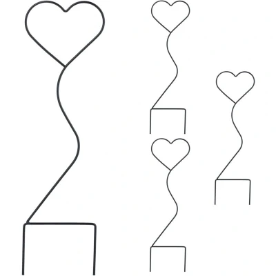 Climbing Support Heart Set of 4, Metal, Climbing, Pot & House Plants, hwd: 49 x 14.5 0.5 cm, Plant, Black Relaxdays
