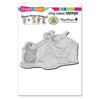 Amanda surprises Monica with a wakeup call. Image measures approximately 2.75 X 4.25 inches. This original design is copyright Ellen Jareckie and House-Mouse Designs. The image is deeply etched and precision cut from premium gray rubber on a 0.12 inch gray rubber foam backing then mounted a cling vinyl decal with full sized image for easier storage and use with an acrylic handle sold separately. Made in the USA.