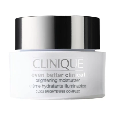 Clinique Even Better Clinical Brightening Moisturiser Cream 50ml features CL302 Brightening Complex™ to visibly reduce dark spots, dullness, and redness while deeply hydrating skin. Formulated with Vitamin C, Salicylic Acid, and Hyaluronic Acid, it’s fragrance-free, non-acnegenic, oil-free, and suitable for all skin types.