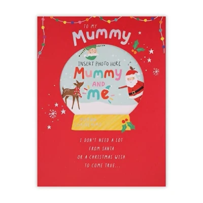 Clintons: Add Your Own Photo Snow Globe Mummy Christmas Card, Xmas Card for Mummy, Multi Colour, 155 x 201, 1171298