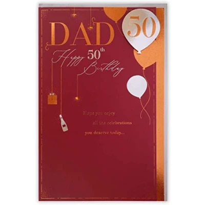 Make every card great by choosing a Clintons card. All Cards are provided with a suitably sized envelope. Cover Message: Dad Happy 50th Birthday Hope you enjoy all the celebrations you deserve today Inside Message: and your 50th Birthday will be just as fantastic as you! Wishing the best Dad a brilliant 50th Birthday Clintons believes in enhancing relationships through the expression of personal emotion and through the celebration of sincere connections. Find the perfect card for any occasion at Clintons. From birthdays to retirement, weddings, or christenings, we offer a great selection of cards. We are a destination for all of life’s special moments and occasions. Clintons require all suppliers to comply with applicable law, including the EU timber regulations. FSC, or Forest Stewardship Council, is widely respected as having one of the most robust and stringent forest certification programs in place to ensure ethical sourcing of paper products. Clintons continue to strive to ensure the ethical sourcing of our timber products.