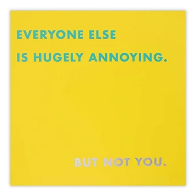 Make every birthday card great by choosing a Clintons card. All our cards are provided with a suitably sized envelope. Cover Message: Everyone else is hugely annoying. but not you. Inside Message: The inside is left blank for your own message Clintons believes in enhancing relationships through the expression of personal emotion and through the celebration of sincere connections. Find the perfect card for any occasion at Clintons. From birthdays to retirement, weddings, or christenings, we offer a great selection of cards. We are a destination for all of life’s special moments and occasions. Clintons require all suppliers to comply with applicable law, including the EU timber regulations. FSC, or Forest Stewardship Council, is widely respected as having one of the most robust and stringent forest certification programs in place to ensure ethical sourcing of paper products. Clintons continue to strive to ensure the ethical sourcing of our timber products.