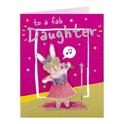 Make every greeting card great by choosing a Clintons card Card delivered with a suitable sized envelope Cover Message: to a fab Daughter Inside Message: Have a very HOPPY birthday! with lots of love