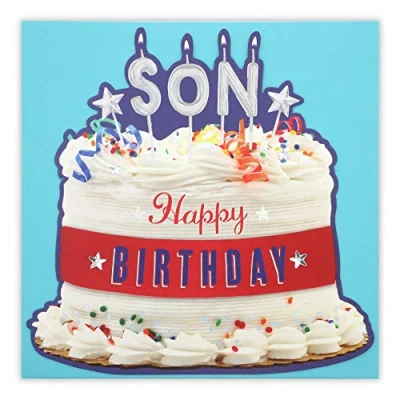 Clintons: Son Birthday Card, Giant Cake Card for Son, Happy 186x186mm, 1166251, multi colour