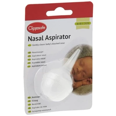 The Clippasafe Nasal Aspirator gently clears nasal congestion in babies using soft, squeeze-powered suction. It features an ergonomic design, easy disassembly for sterilization, and is made from baby-safe, BPA-free materials.