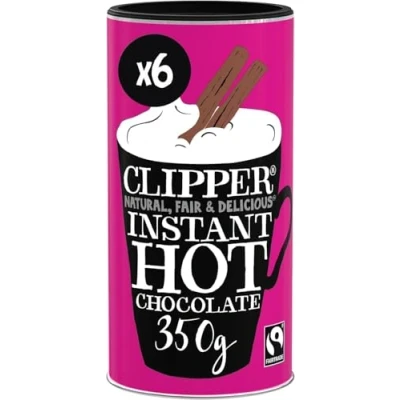 Clipper Hot Chocolate: This 6 x 350g tub hot chocolate pack (total 2.1kg) boasts a seriously velvety instant chocolate powder, to enjoy hot or cold; mix with water or milk and stir well Premium organic hot chocolate: Our instant hot chocolate powder is a rich and luxurious fairtrade hot chocolate, for cosying up with on a cold day, or cooling you down with a milkshake in summer Natural ingredients: Clipper products are made with pure natural ingredients. We use the highest-quality non-GM soil-association approved organic ingredients and add nothing artificial For kitchen, office, parties or gifts: This big tub of drinking chocolate is great for home or catering. Sip your favourite drink with the knowledge that at Clipper, we do our best for the environment Enjoy a Clipper cuppa: Luxury tea bags, hot chocolate gift sets, loose leaf teas, fairtrade tea bags or fruity tea bags and infusions; we source the best quality fine drinks, so every cup is special