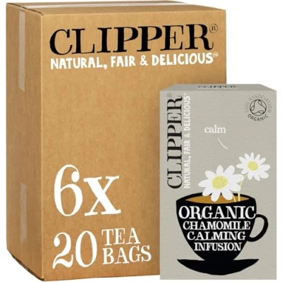 Clipper Infusions Chamomile Tea: Our camomile tea is a delicate, distinctive infusion with a mellow floral character. A calming cup to enjoy at any time of day or night; at home, at work or at events Naturally caffeine free teabags: 6 x boxes of 20. Our herb tea bags are plant-based, ethically sourced, with no artificial ingredients added and no caffeine - the ideal everyday or afternoon tea blend Pure, unbleached teabags: 120 camomile tea bags with a deliciously delicate flavour. Organic tea bags in plastic-free, unbleached material; so being good to your guests doesn't have to cost the Earth Natural, organic tea: We fill our plastic-free tea bags with non-GM soil-association approved organic ingredients (bye-bye pesticides, hello wildlife) and always do the best we can for the environment Enjoy a Clipper cuppa: Luxury tea bags, tea gift sets, loose leaf teas, fairtrade tea bags or fruity tea bags and tea infusions; we source the best quality fine teas, so every cup you drink is special