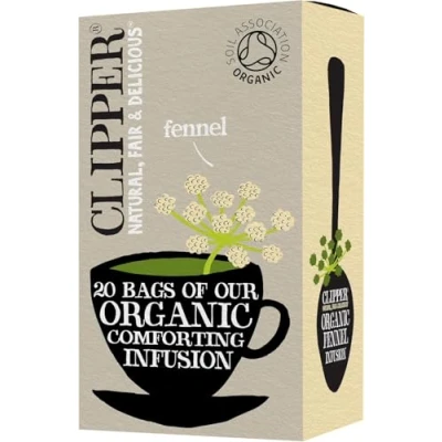 Clipper Infusions Fennel Tea Bags: A light, distinctive and aromatic infusion with a clean and balanced taste. Comforting and mildly spicy, with a subtle natural sweetness, to enjoy at any time of day Naturally caffeine free Clipper tea bags: Our herb tea bags are plant-based and ethically sourced, with no artificial ingredients added and no caffeine - the perfect everyday or afternoon tea blend Pure, unbleached tea bags: 20 fennel teabags with a deliciously delicate flavour. Organic tea bags in plastic-free, unbleached material; so being good to your guests doesn't have to cost the Earth Natural, organic tea: We fill our plastic-free tea bags with non-GM soil-association approved organic ingredients (bye-bye pesticides, hello wildlife) and always do the best we can for the environment Enjoy a Clipper cuppa: Luxury tea bags, tea gift sets, loose leaf teas, fairtrade tea bags or fruity tea bags and tea infusions; we source the best quality fine teas, so every cup you drink is special