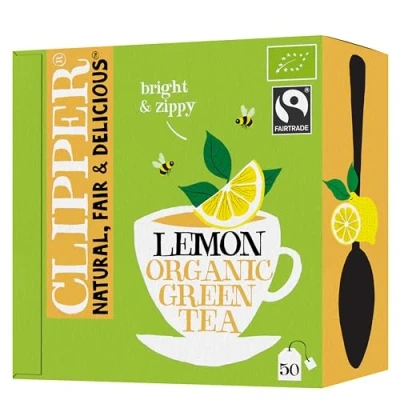 Clipper Organic Lemon Green Tea Bags Box of 50 Teabags for Home & Office Eco Conscious, Fair Trade Natural, Unbleached, Plant Based, Compostable Biodegradable Bag