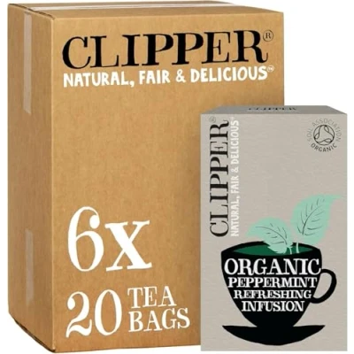 Clipper Organic Peppermint Tea Bags 120 Infusion Mint Teabag Sachets (6x Boxes of 20) Bulk Buy, Home & Catering Caffeine Free Herbal Natural, Unbleached, Plant Based Biodegradable