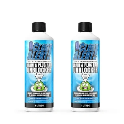 Clog Alert! Bathroom Drain and Plug Hair Unblocker, Effectively Removes Blockages, Liquid Cleaner for Blocked Pipes in Sinks or Shower Traps 1 Litre (Pack of 2)