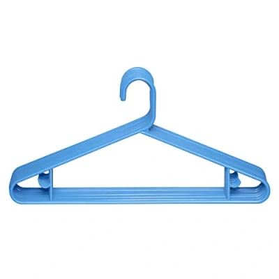 LIGHTWEIGHT PLASTIC BUILD – Constructed from flexible plastic with two vertical bars for reinforced support, these everyday hangers are great for shirts, blouses, and delicate clothing. FABRIC FRIENDLY – Each hanger boasts a slim and sleek outline with a smooth surface. The groove-free design prevents unwanted creases and marks. ACCESSORY HOOKS – Not just for shirts and blouses, each multipurpose hanger is complete with two pre-attached accessory hooks to securely hold strappy clothing such as tank tops, under garments and lingerie. EASY ORGANIZATION – Life can be hectic enough, and these slim, space-saving clothing hangers make for quicker and simpler closet organization for easy grab-and-go wardrobe choices. VALUE PACK – This bulk pack includes 10 slim clothing hangers in a solid blue hue.