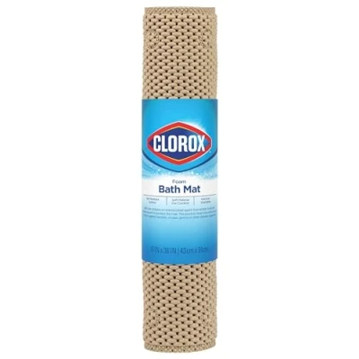 Clorox by Duck Brand Cushioned Foam Bathtub Mat, Non Slip Bath Mat with Suction Cups For Comfort and Safety, 17" x 36", Taupe