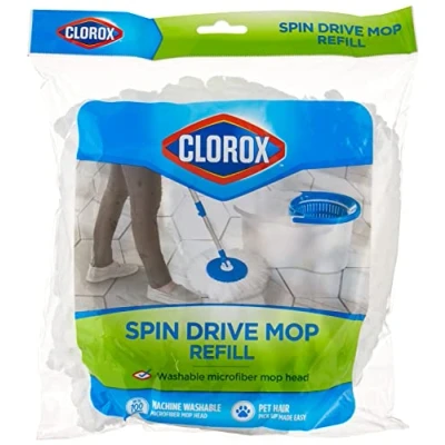 Refill mop head for Clorox spin dry mop (item #626000) Don't miss a spot, the 180 degree pivoting mop head makes it easy to reach under furniture and into tight spaces Mop head is reusable and washable Great for use on tile, marble, wooden laminate and other sealed flooring International products have separate terms, are sold from abroad and may differ from local products, including fit, age ratings, and language of product, labeling or instructions., Weight: 0.1984160358 pounds, Manufacturer: Clorox