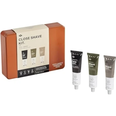 CLOSE SHAVE KIT: In a reusable tin features three shaving essentials - face wash, shave cream, and shave balm CONVENIENT TRAVEL TUBES 50ml tubes, ideal for on-the-go; reusable storage tin made of recycled materials - measures 233mm w x 171 mm h x 47mm d OAK MOSS SCENT Offers subtle hints of earthy musk; leaves one cleansed and refreshed VEGAN FRIENDLY & CRUELTY FREE FORMULA Filled with nourishing ingredients that will moisturize skin THE GENTLEMEN'S HARDWARE COLLECTION offers stylish everyday goods designed for stylish city dwellers and adventure seekers – mix and match our unique giftable tools, office supplies, sports-themed items, outdoor products, and more