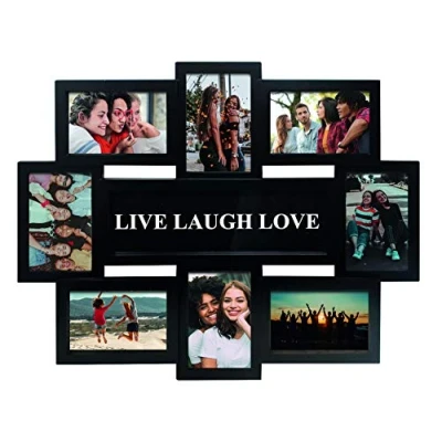Design: set up unforgettable moments in style. Thanks to the high-quality photo frame from Close Up, no problem. 8 pictures are framed as a photo collage. Here your best friends, family and favourite memories will find space on your wall. Practical: exchange the pictures quickly and easily in the removable frame. The "LIVE LAUGH LOVE" lettering with the dimensions 30 x 9 cm can also be changed. On the back there is a handy hanger for easy hanging. Simple: small clips hold the plate firmly on the back. Turn the clip outwards, lift the lid and place your own photos, drawings or postcards in the collage frame. For 4 landscape formats and 4 portrait formats at 10 x 15 cm. Safe: unlike many photo frames with glass pane, the Close Up picture frame has plastic panes that do not break. The photo frame is therefore also ideal for children's rooms and living rooms. Gift: The photo collage is a great gift idea for your best friend, mother, father, grandma, grandpa or partner. Give unforgettable memories that never pass.