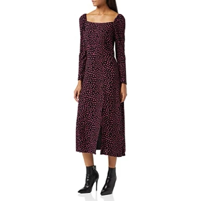 Closet London Women's Print High Neck Midi Dress Casual, Purple, 10 (Pack of 2)