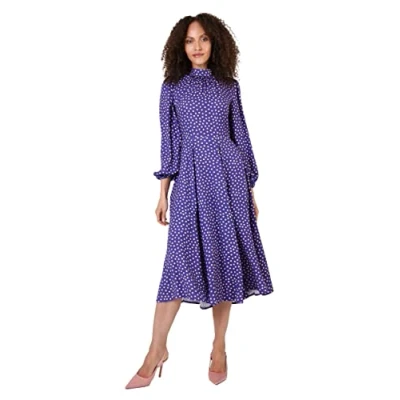 Closet London Women's Print High Neck Midi Dress Casual, Purple, 10 (Pack of 2)