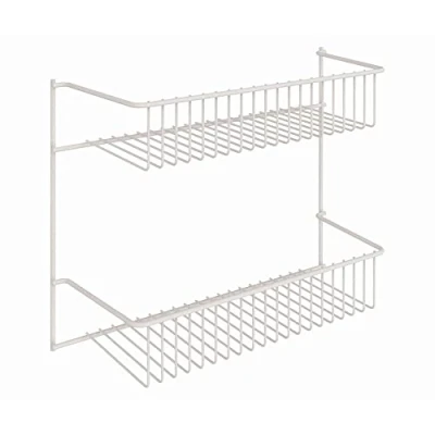 Can be installed to cabinet doors or walls Perfect for any room or closet Installation hardware included for an easy installation Features two 5-inch deep tiers for storage Material: Epoxy coated steel