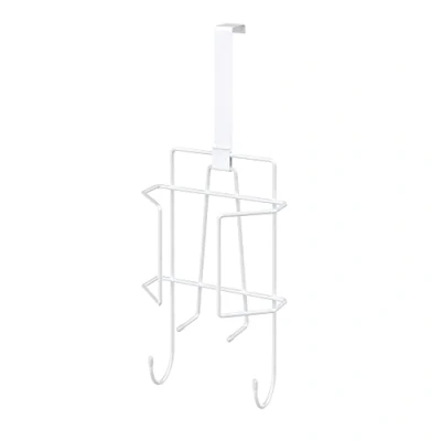 Over the door ironing caddy, suitable for storing iron and ironing board Hook over a door to make the most of your space, or use bracket to mount directly to a wall Comes complete with hardware in case of mounting Great for use with T-Bar ironing boards 46,7cm tall x 19cm Wide x 9cm Deep