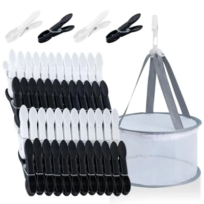 [BEST COMBINATION OF CLOTHES HOLDERS AND STORAGE BAGS] No need to waste time looking for heavy duty clothes clips and drying ropes, we offer you a good solution, including 48 durable clothes hangers for hanging clothes and storage bags with clothes holders. The laundry line has a very practical hook that releases the hands when hanging clothes. [Quality Material] These clothes clips are made of rust-proof stainless steel springs and PP and will not rust, unlike wooden clamps and stainless steel clothes clamps, especially outdoors, they will not crack, rough or rust and will not leave rust surfaces or stains on your clothes. Strong grip and durable: clothing clamp with double clamp, non-slip handle, easy to open and close. Dryer rope flaps and hooks can firmly attach clothes and other items, withstand strong wind and damp weather and are suitable for indoor and outdoor use. Very good with dryer. Good helper in life. [Convenient storage of clothes airers] When you use our clothes airers and packs, you do not lose plastic clamps; many of us have lost the laundry holder just because we did not have a laundry holder bag to pack and protect all fixed clothes holders on the laundry holder; this nail wash bag is the solution to make all your nails safe! Garment bag with zip. When not in use, you can keep the clothes clamp of the dryer rope firmly clean and are a good helper in life. [Multipurpose] Our clothes flaps (multipurpose utility chip clamps) can be used for clothes in the laundry or closet, towels in the bathroom, crafts, snack bag seal, food freezer, paper folders and are easy to carry when travelling.